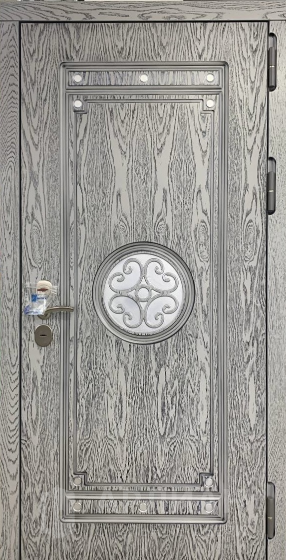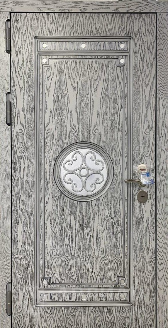Серая дверь с отделкой МДФ под шлифованный металл №500