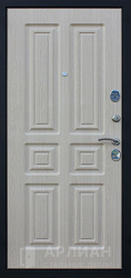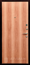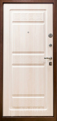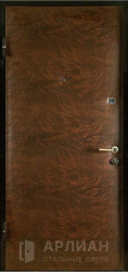 Снаружи полотно чаще окрашено в нитроэмаль или имеет дверь с порошковым напылением. В эконом-сегменте распространено комбинированное решение: снаружи дверь порошок для защиты от механических воздействий, внутри — напылением и винилискожей, чтобы вход выглядел уютнее. Более дорогие модели могут сочетать порошковое покрытие с МДФ панелями, винорит-накладками, ламинатом или шпоном дуба, создавая вид классической двери из дерева.