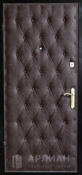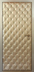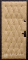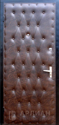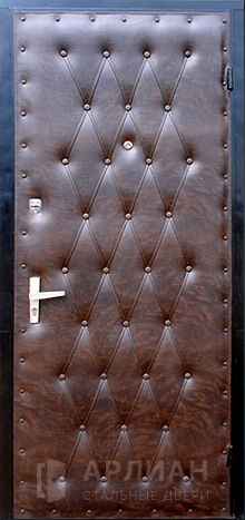 Входные двери винилискожа — это металлические конструкции, у которых стальное полотно снаружи или изнутри закрыто слоем мягкой искусственной кожи на основе ПВХ. Винилискожа представляет собой эластичную ткань с виниловым покрытием, которое наносят на волокнистую основу: материал хорошо тянется, не боится влаги и уверенно переносит перепады температур, благодаря чему его широко применяют для отделки дверей.