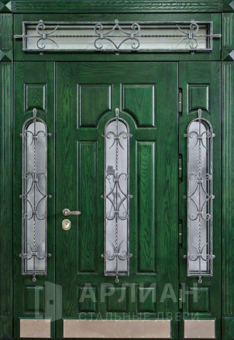 Трехстворчатая парадная входная дверь с терморазрывом и ковкой №34