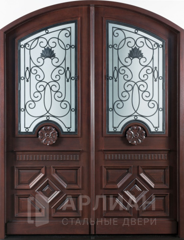 Высокая арочная дверь с фрамугой и кованой решеткой №12